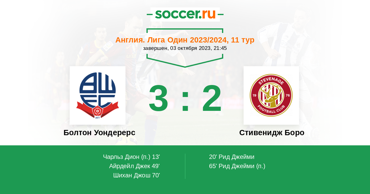 Протокол матча Болтон Уондерерс против Стивенидж Боро