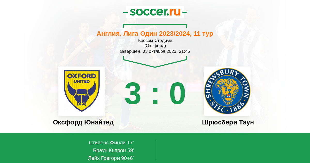 Протокол матча Оксфорд Юнайтед против Шрюсбери Таун
