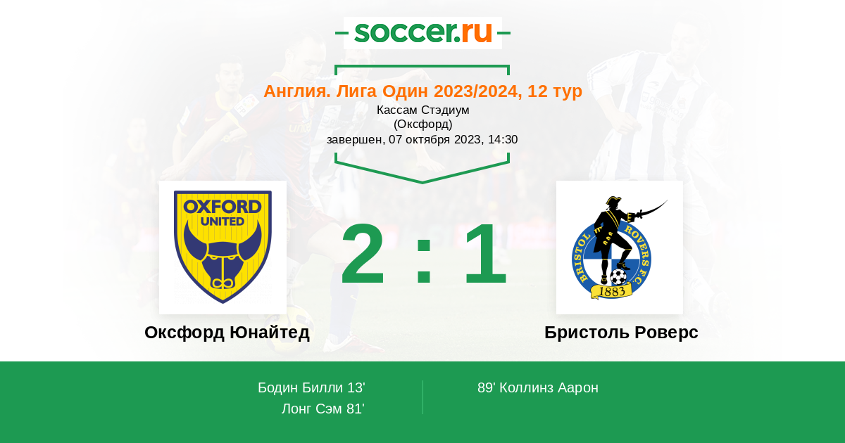 Протокол матча Оксфорд Юнайтед против Бристоль Роверс