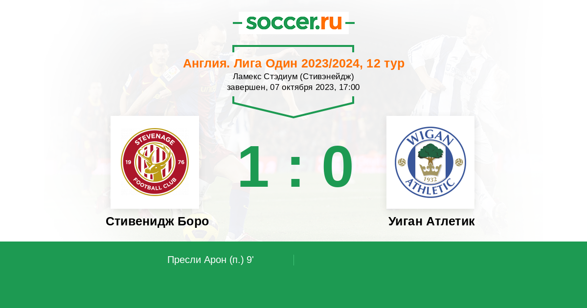 Протокол матча Стивенидж Боро против Уиган Атлетик