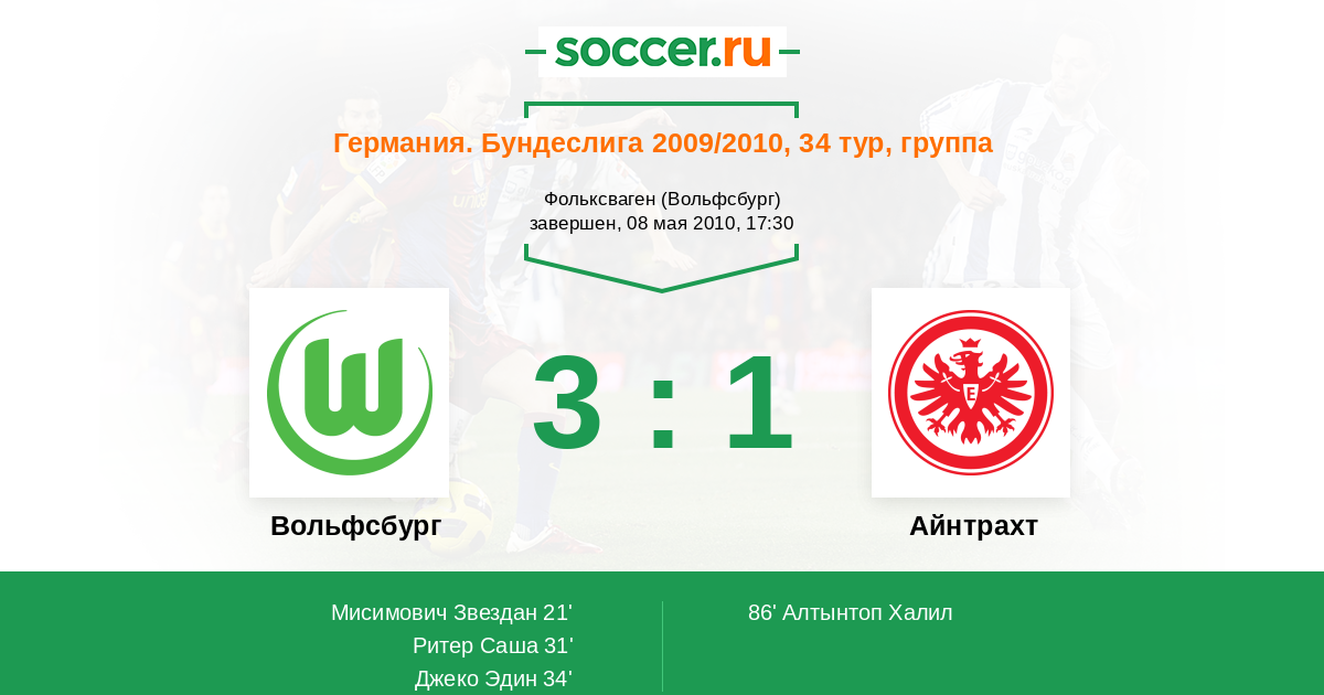 Протокол матча Вольфсбург против Айнтрахт