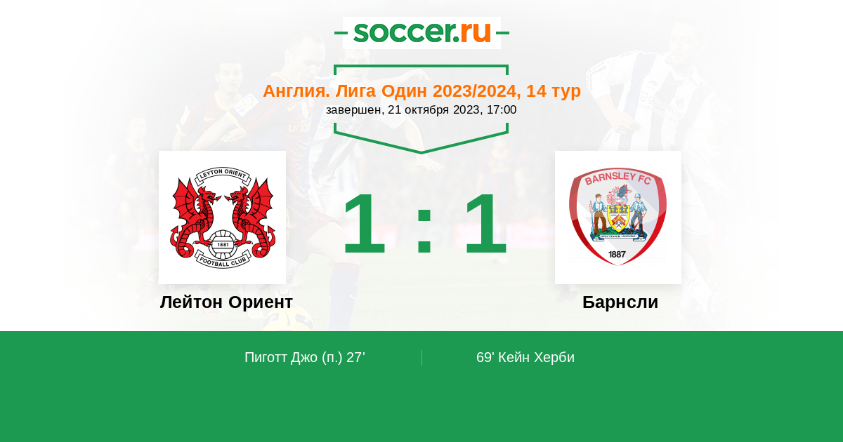 Протокол матча Лейтон Ориент против Барнсли