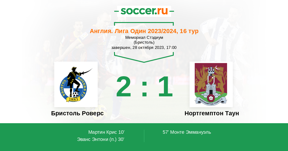 Протокол матча Бристоль Роверс против Нортгемптон Таун