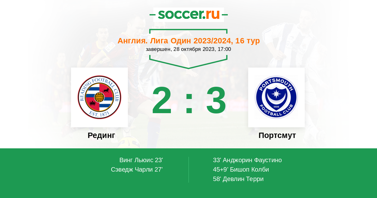 Протокол матча Рединг против Портсмут