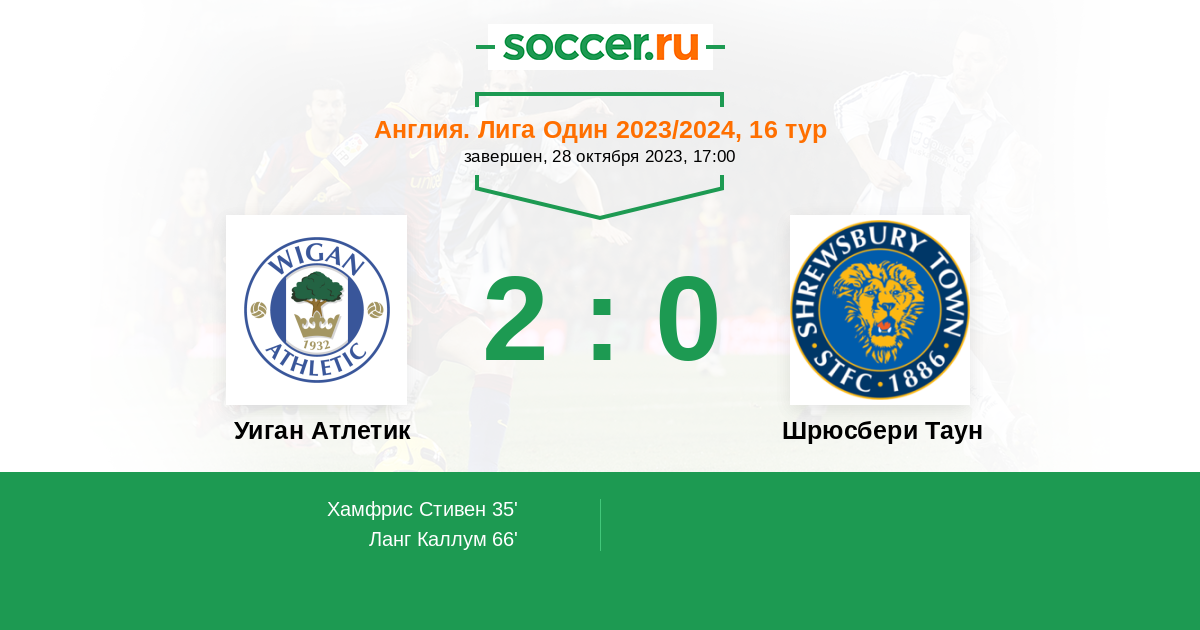 Протокол матча Уиган Атлетик против Шрюсбери Таун