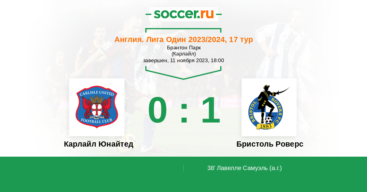 Протокол матча Карлайл Юнайтед против Бристоль Роверс