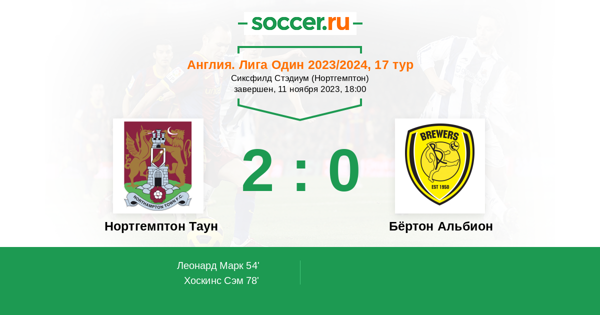Протокол матча Нортгемптон Таун против Бёртон Альбион