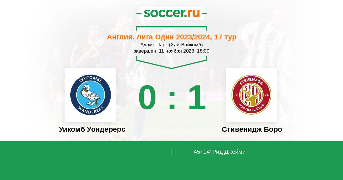 45+14’ 0:1 Рид Джейми