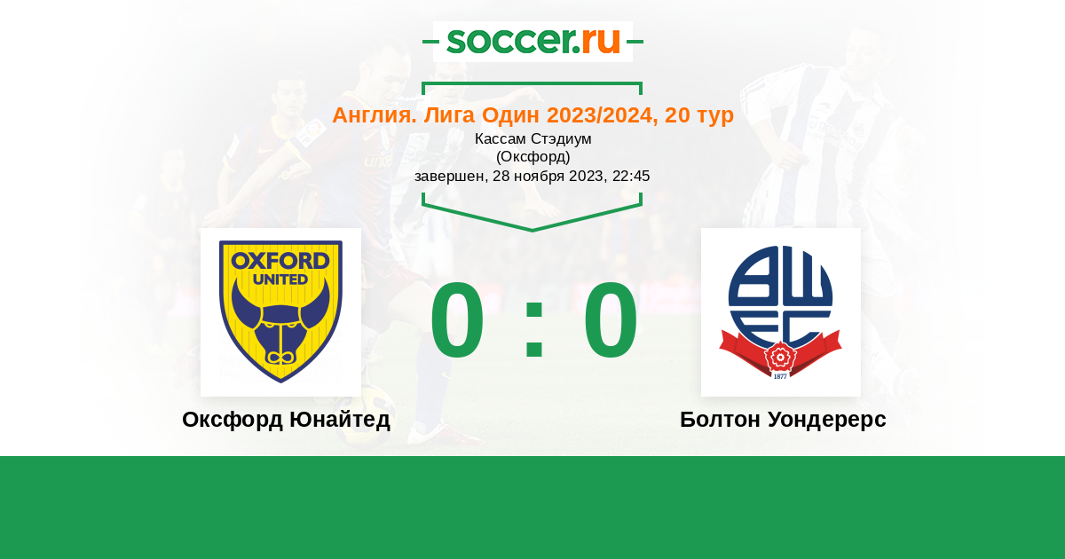 Протокол матча Оксфорд Юнайтед против Болтон Уондерерс