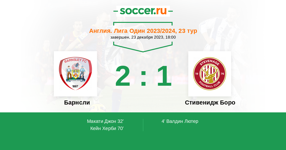 Протокол матча Барнсли против Стивенидж Боро