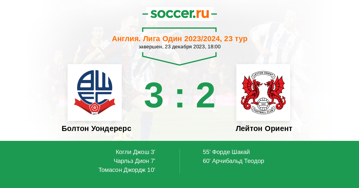 Протокол матча Болтон Уондерерс против Лейтон Ориент