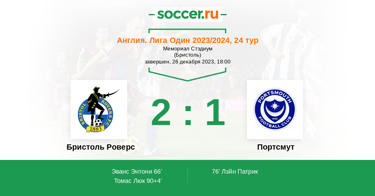 Протокол матча Бристоль Роверс против Портсмут
