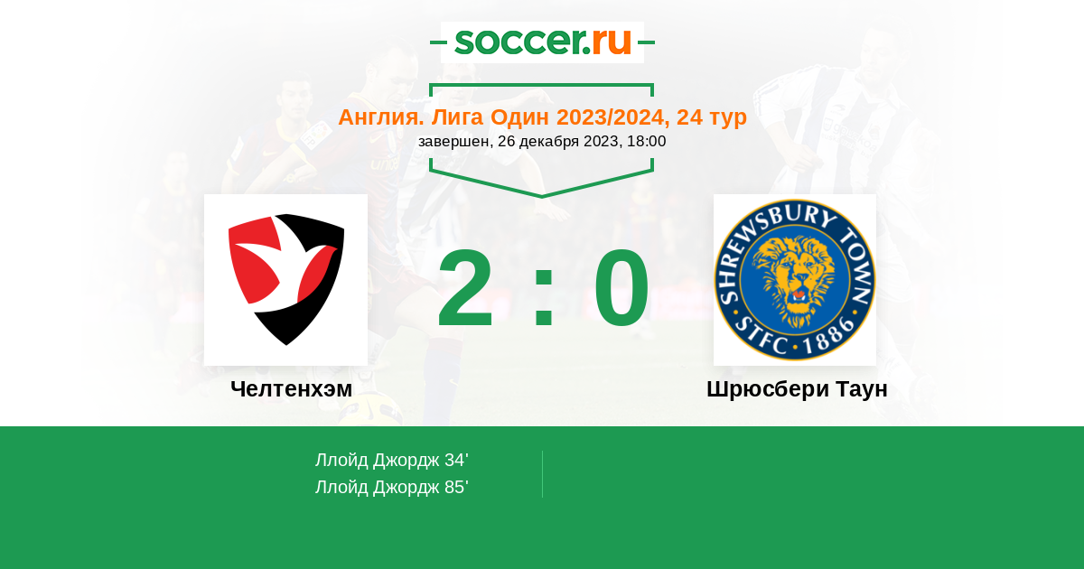 Протокол матча Челтенхэм против Шрюсбери Таун