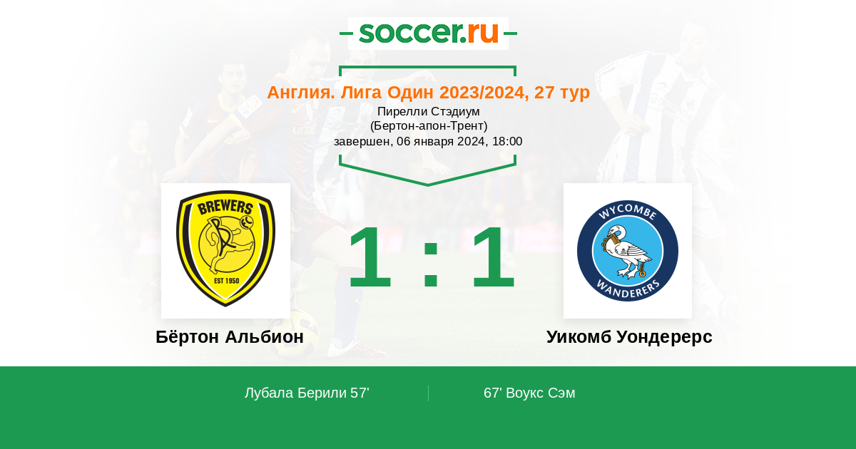 Протокол матча Бёртон Альбион против Уикомб Уондерерс