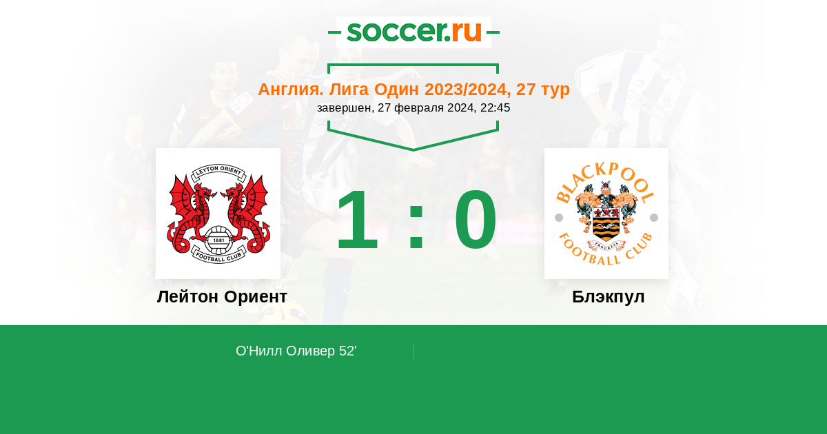 52' (1:0) О'Нилл Оливер (21) (Сотириу Руэль (10))