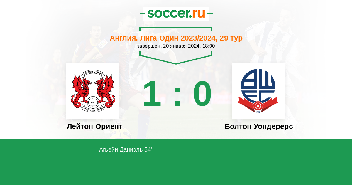 Протокол матча Лейтон Ориент против Болтон Уондерерс