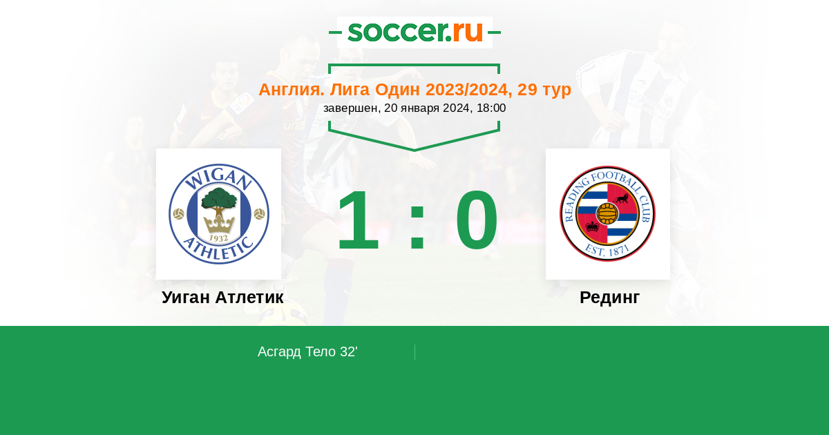 Протокол матча Уиган Атлетик против Рединг