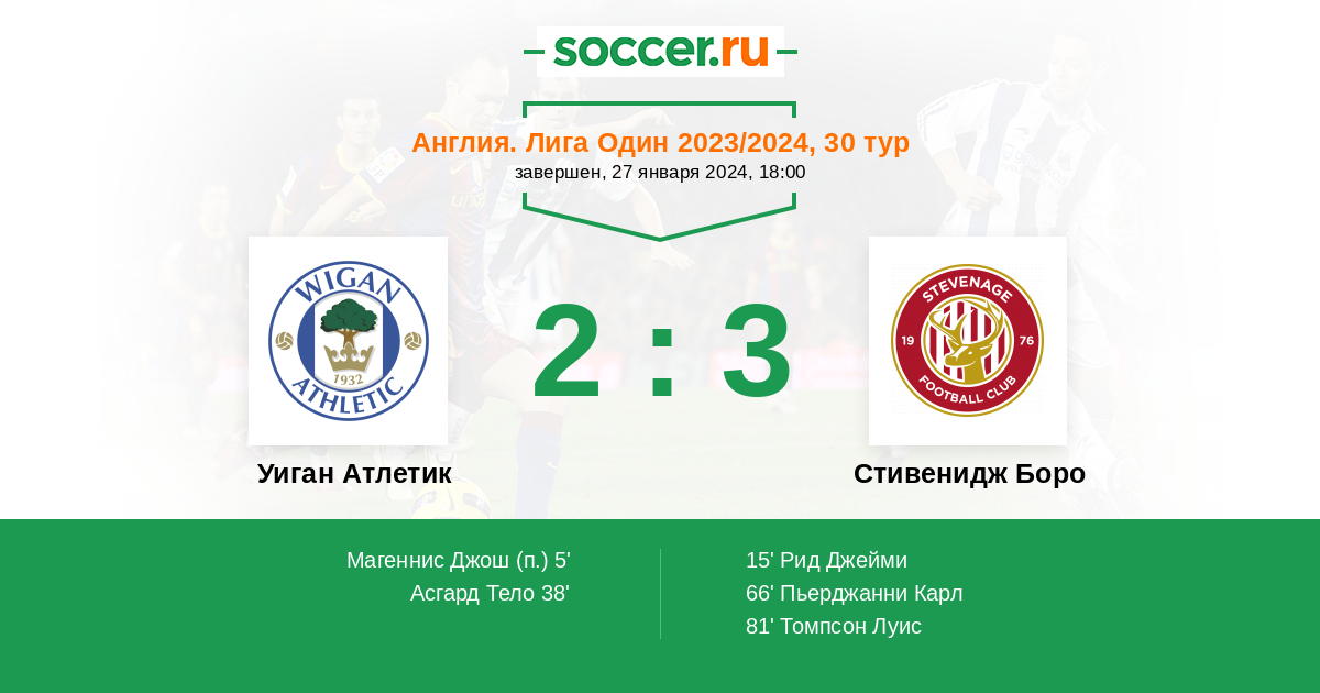 Протокол матча Уиган Атлетик против Стивенидж Боро