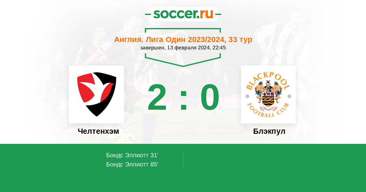 Протокол матча Челтенхэм против Блэкпул
