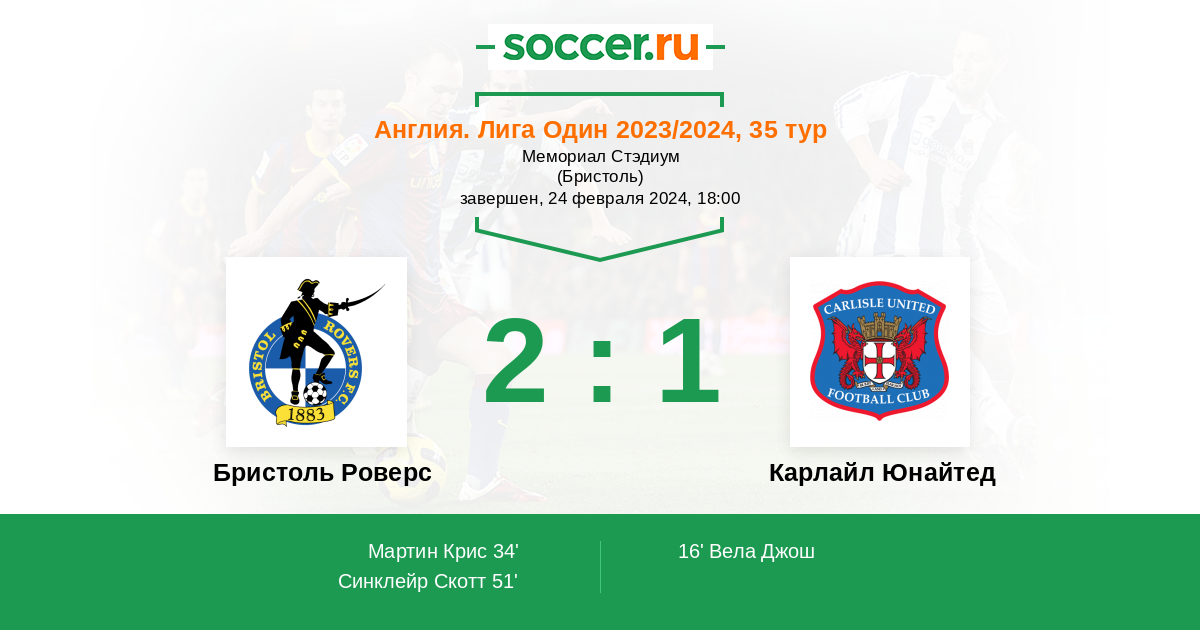 Протокол матча Бристоль Роверс против Карлайл Юнайтед