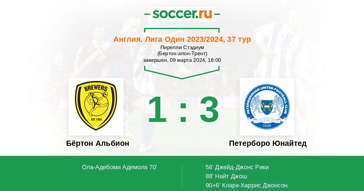 Протокол матча Бёртон Альбион против Петерборо Юнайтед