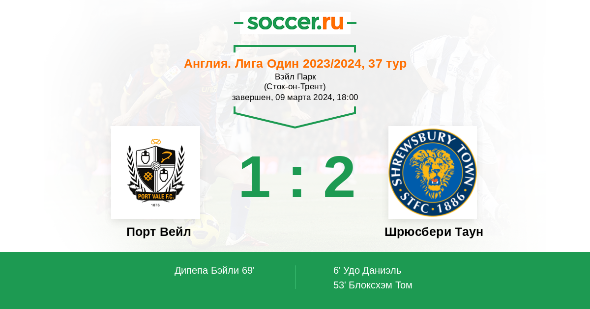Протокол матча Порт Вейл против Шрюсбери Таун