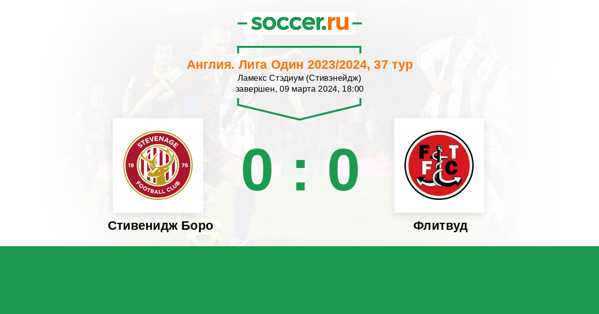 Протокол матча Стивенидж Боро против Флитвуд