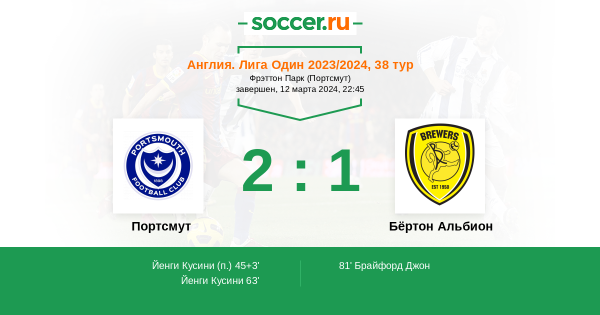 81' (2:1) Брайфорд Джон (2) (Ола-Адебоми Адемола (20))