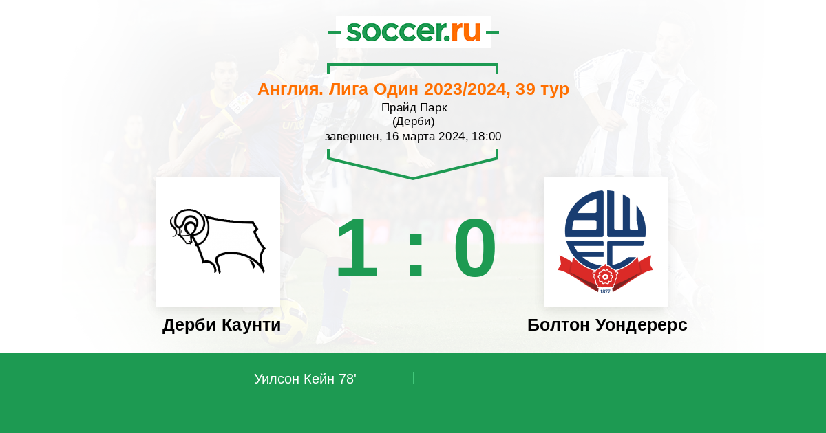 Протокол матча Дерби Каунти против Болтон Уондерерс