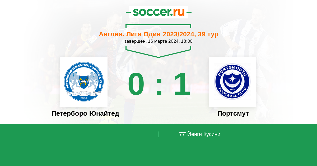 Протокол матча Петерборо Юнайтед против Портсмут