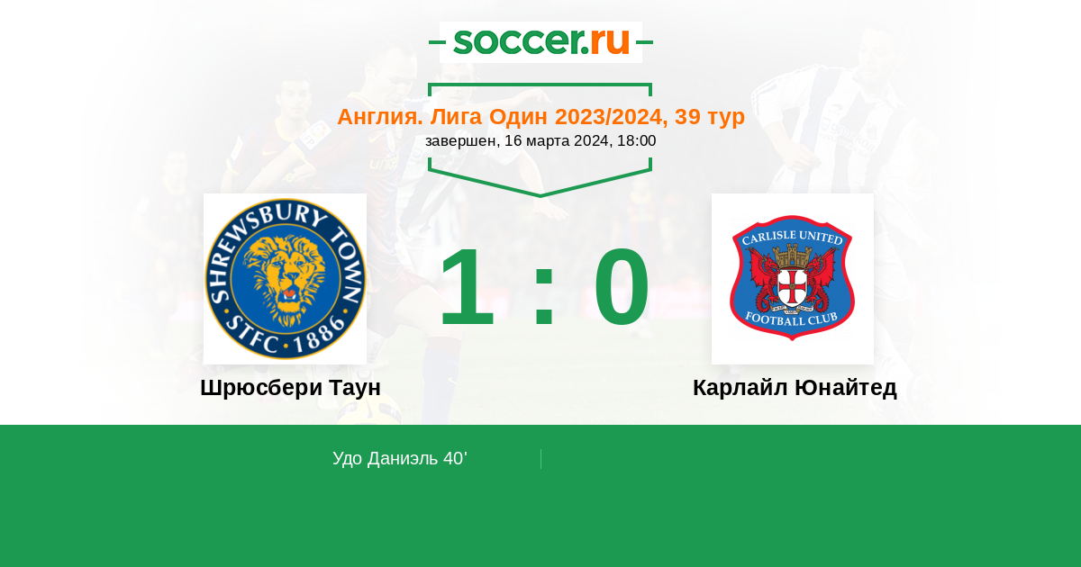 Протокол матча Шрюсбери Таун против Карлайл Юнайтед