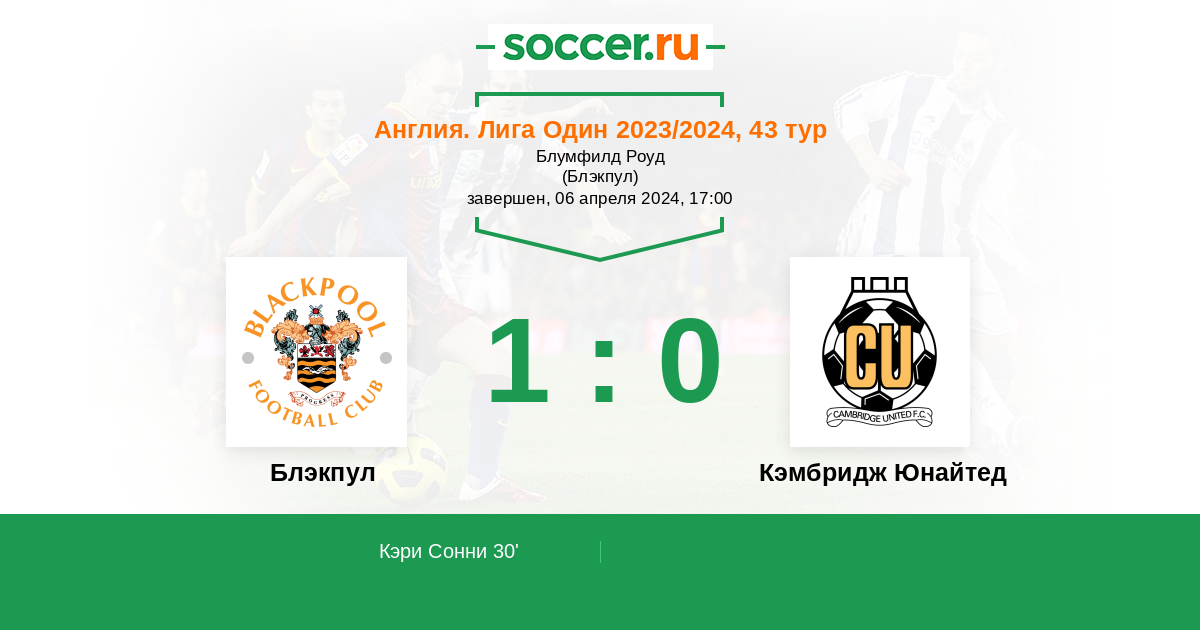 Протокол матча Блэкпул против Кэмбридж Юнайтед