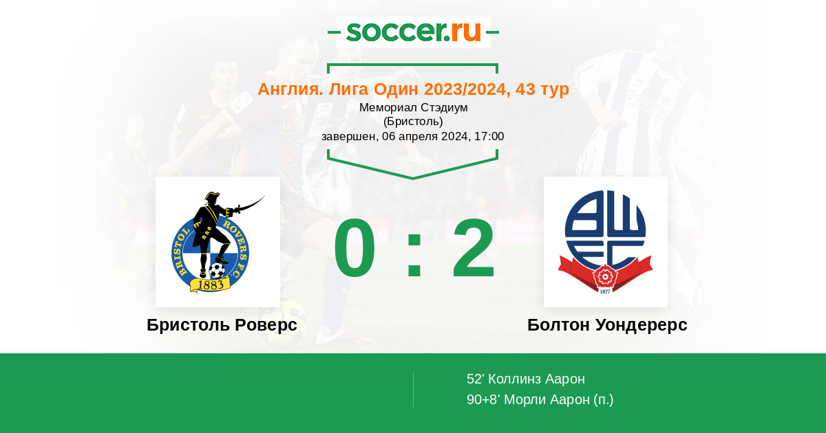 Протокол матча Бристоль Роверс против Болтон Уондерерс