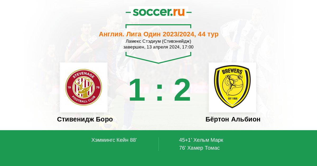 Протокол матча Стивенидж Боро против Бёртон Альбион