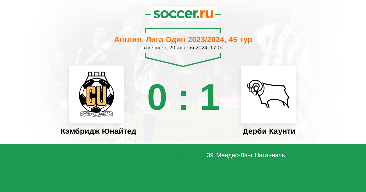 Протокол матча Кэмбридж Юнайтед против Дерби Каунти