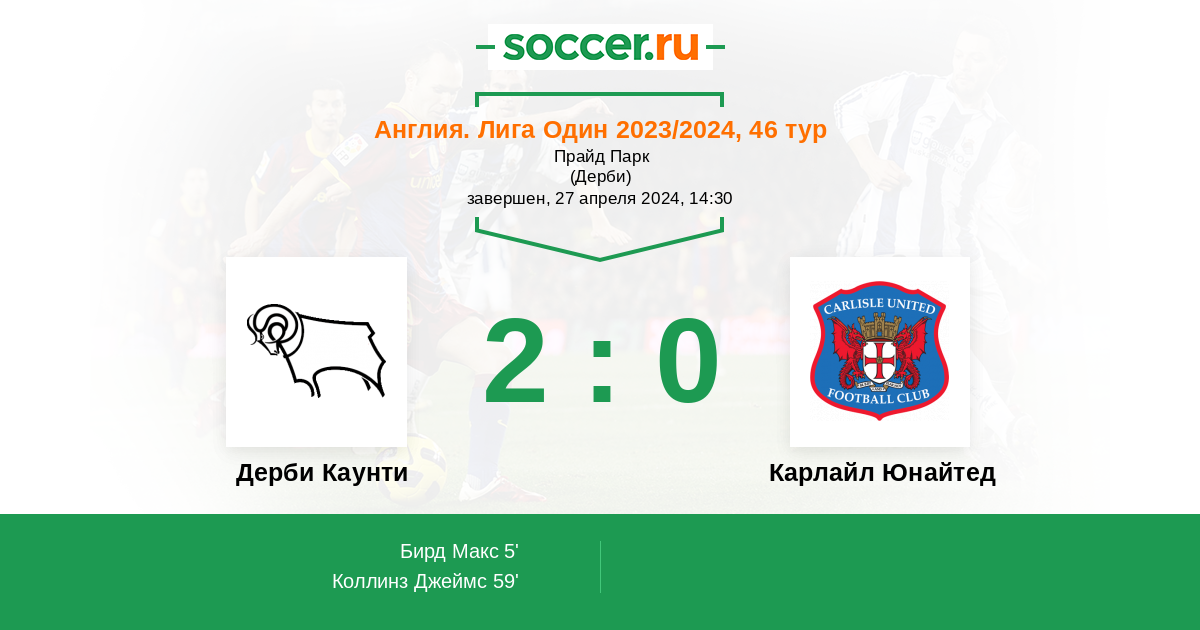 Протокол матча Дерби Каунти против Карлайл Юнайтед