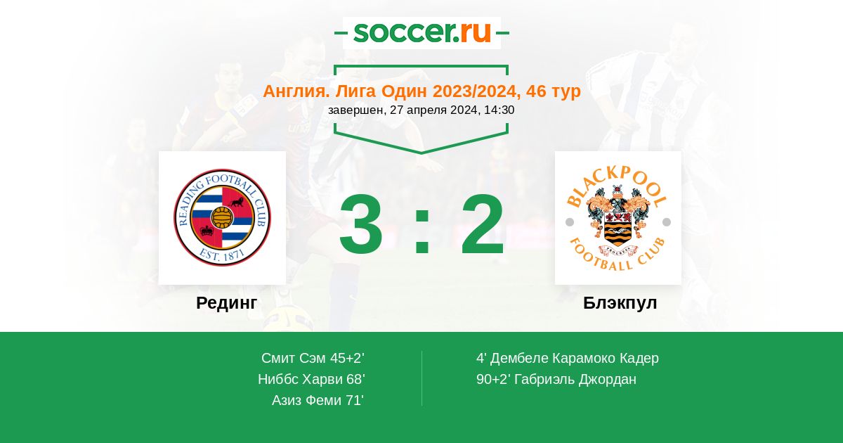 Протокол матча Рединг против Блэкпул