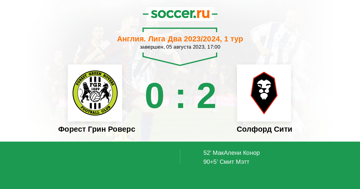 Протокол матча Форест Грин Роверс против Солфорд Сити