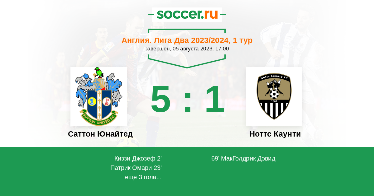 Протокол матча Саттон Юнайтед против Ноттс Каунти