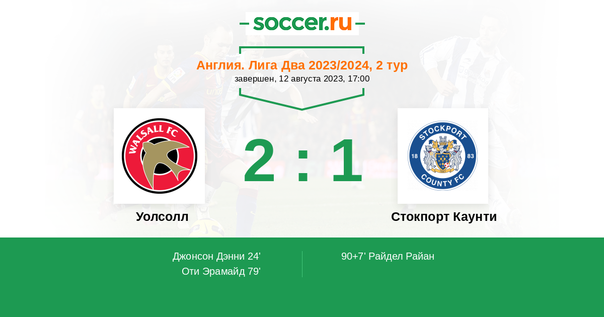 Протокол матча Уолсолл против Стокпорт Каунти