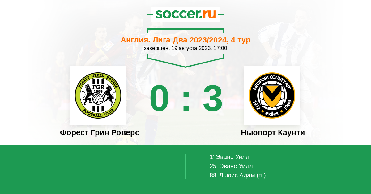 Протокол матча Форест Грин Роверс против Ньюпорт Каунти