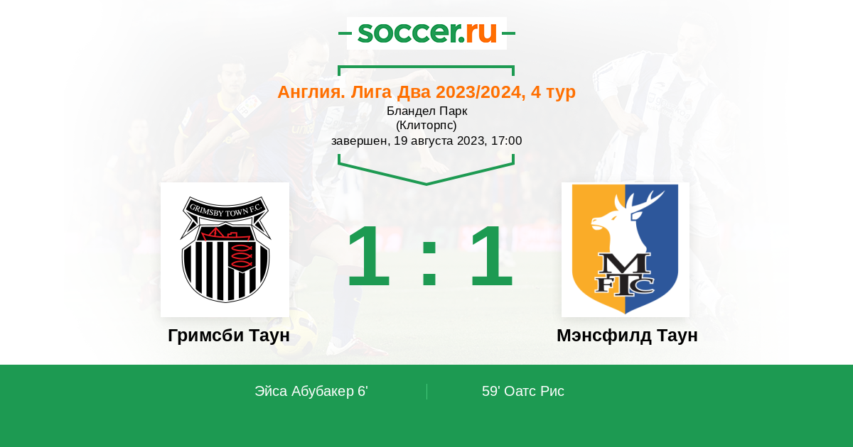 Протокол матча Гримсби Таун против Мэнсфилд Таун