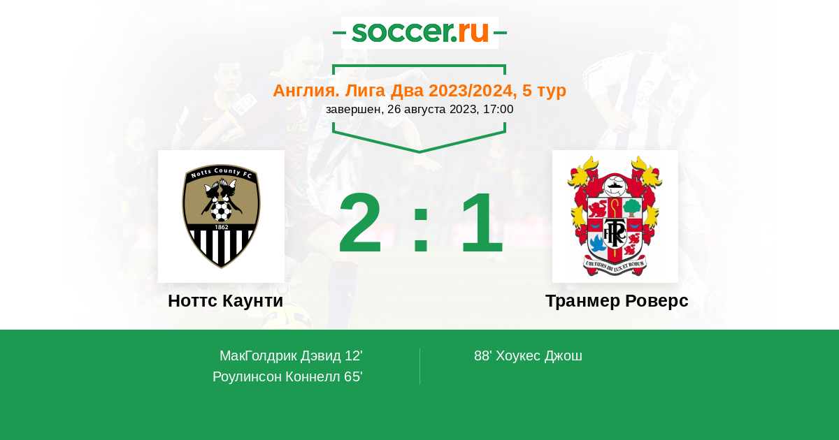 Протокол матча Ноттс Каунти против Транмер Роверс