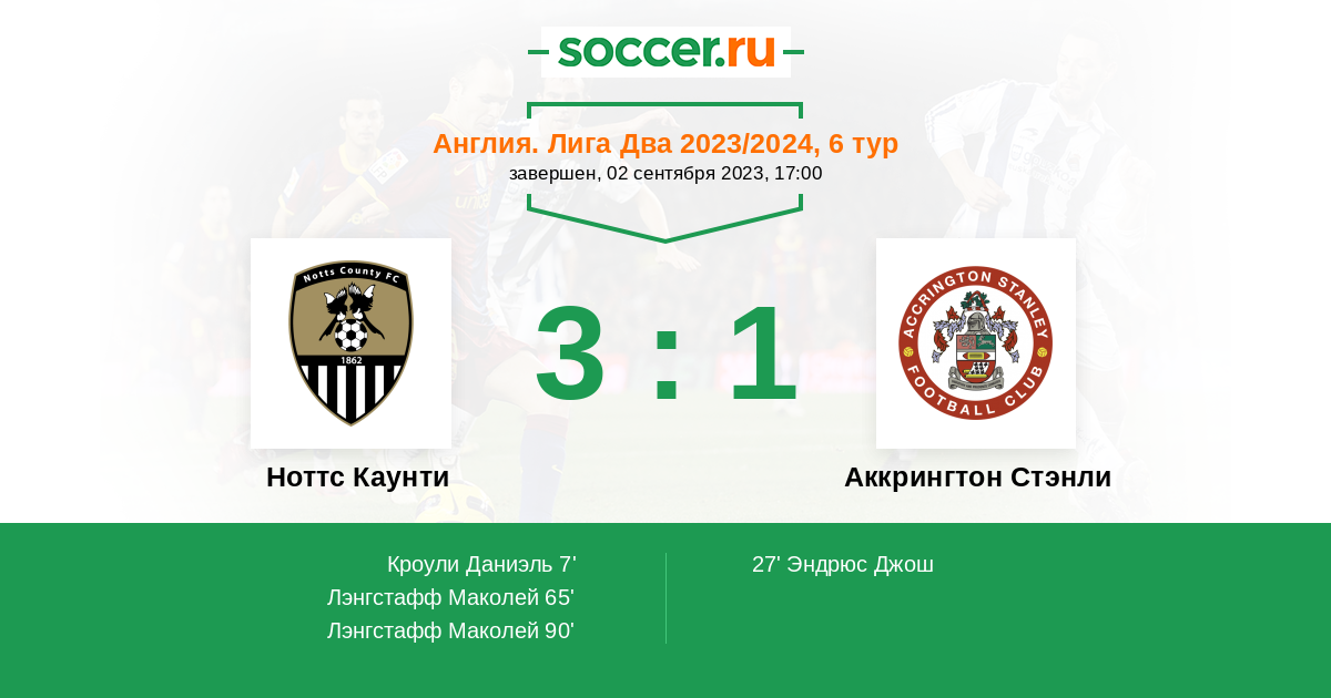 Протокол матча Ноттс Каунти против Аккрингтон Стэнли