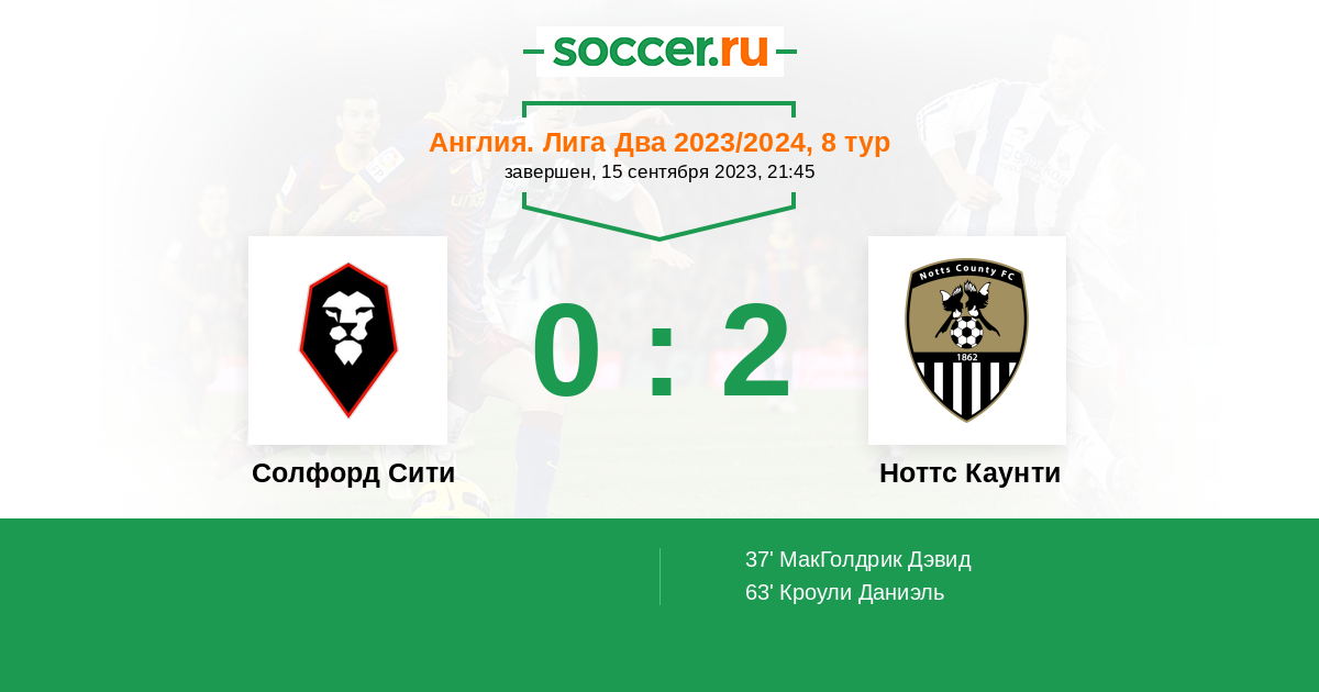 Протокол матча Солфорд Сити против Ноттс Каунти