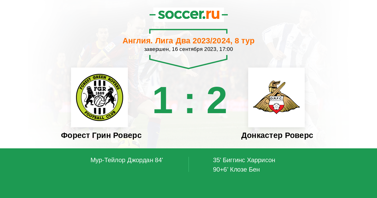 Протокол матча Форест Грин Роверс против Донкастер Роверс