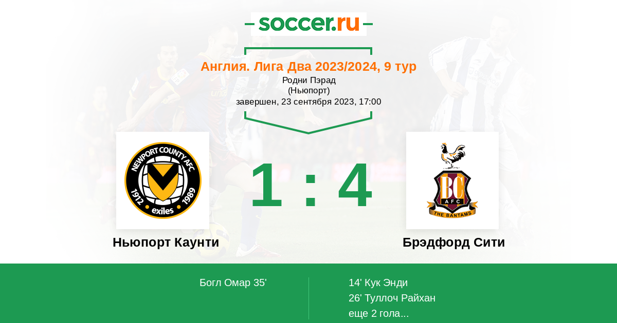 Протокол матча Ньюпорт Каунти против Брэдфорд Сити