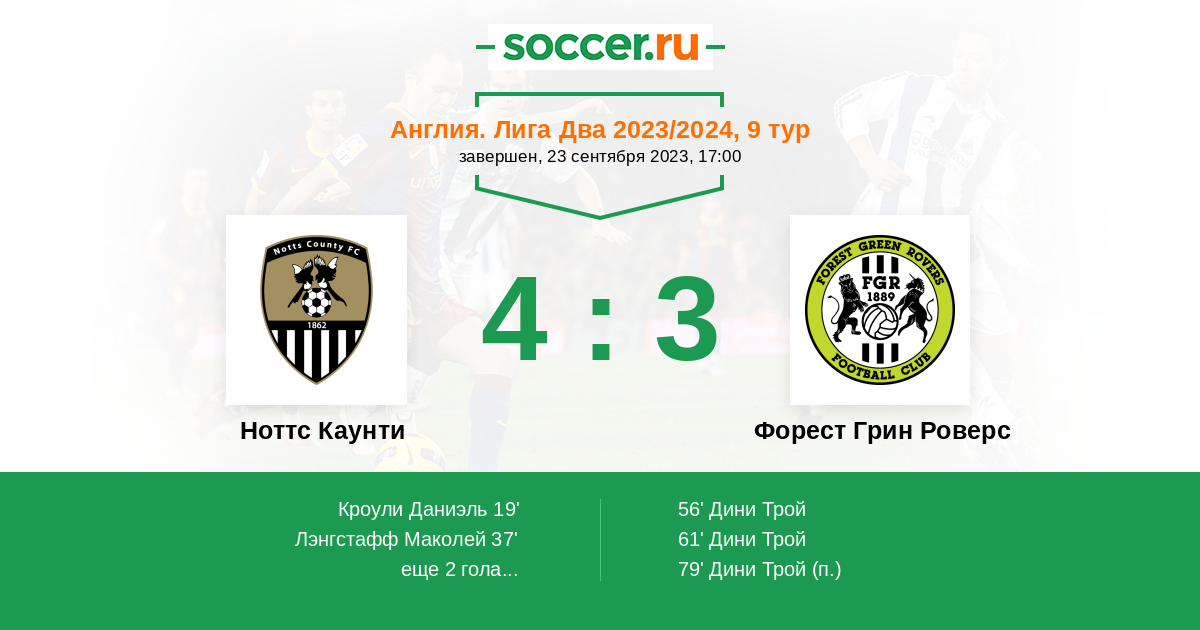 Протокол матча Ноттс Каунти против Форест Грин Роверс