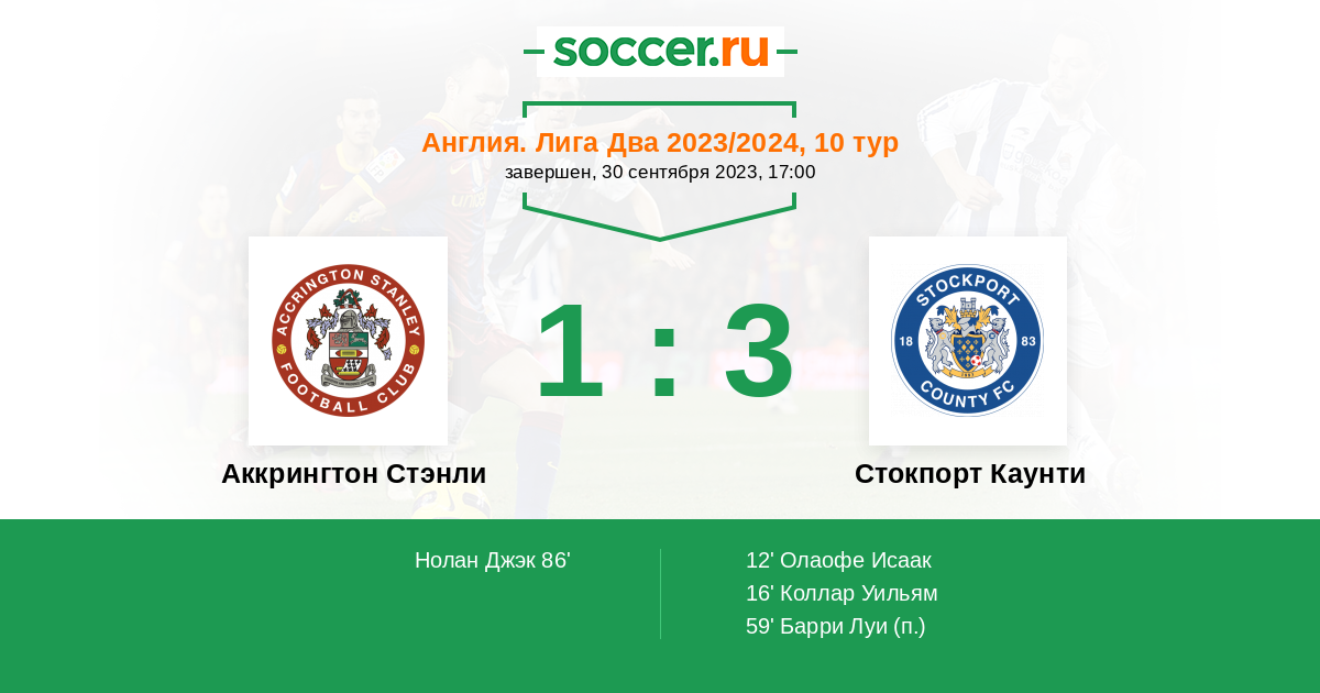 Протокол матча Аккрингтон Стэнли против Стокпорт Каунти