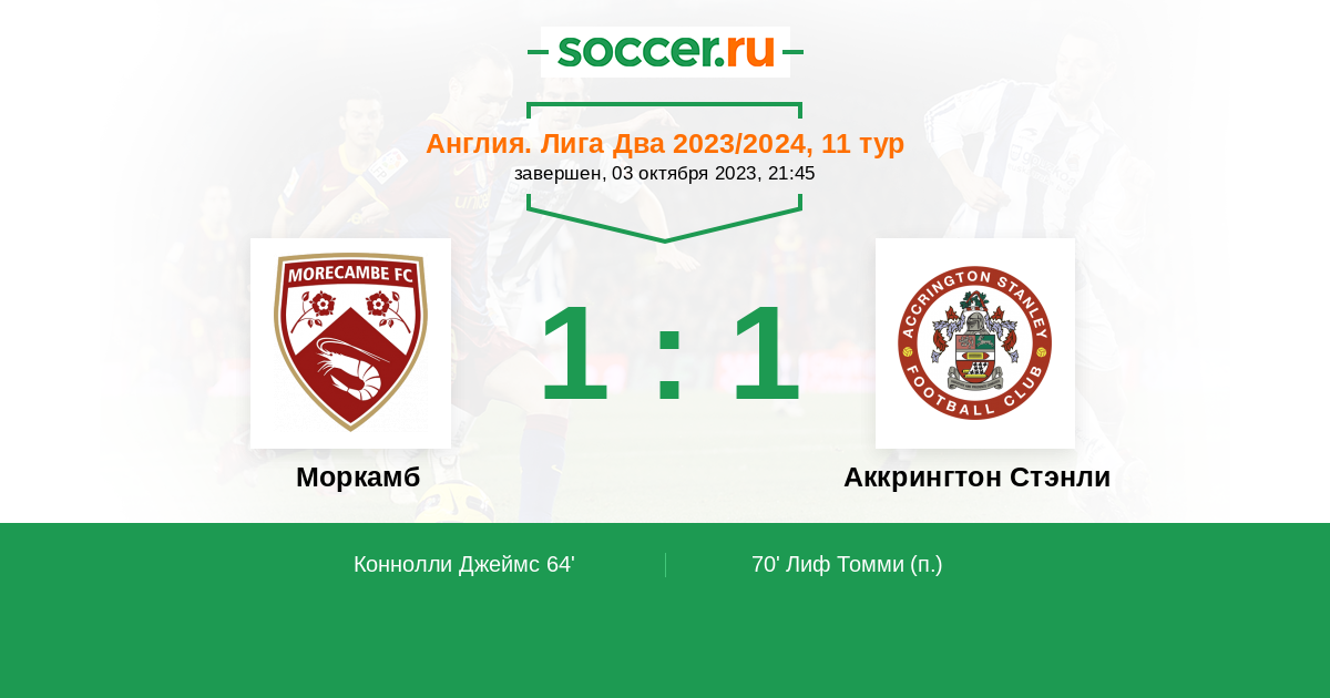 Протокол матча Моркамб против Аккрингтон Стэнли